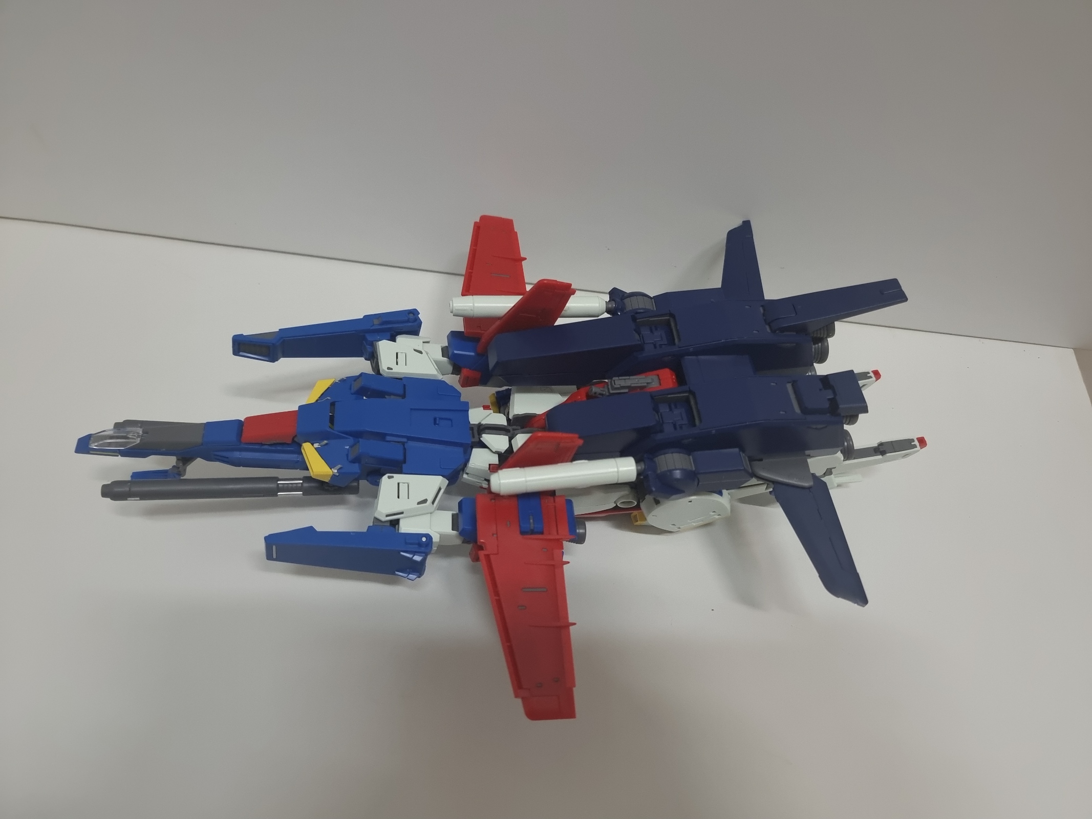 조금은 시간이 더디 걸린 더블제타 건담 보이는 왼쪽이 강화형 오른쪽이 일반형이다.일단 실드의 길이가 조금 차이가 난다.강화형이 좀 더 길어졌으며 길어진 탓에 어깨에 걸려 일자로 펼 수는