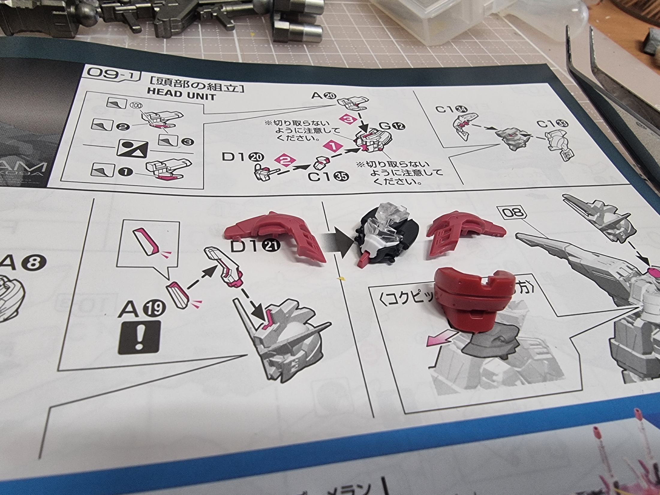 핀셋으로 열심히 끼우다 보니 헤드도 조립을 완료해 간다.