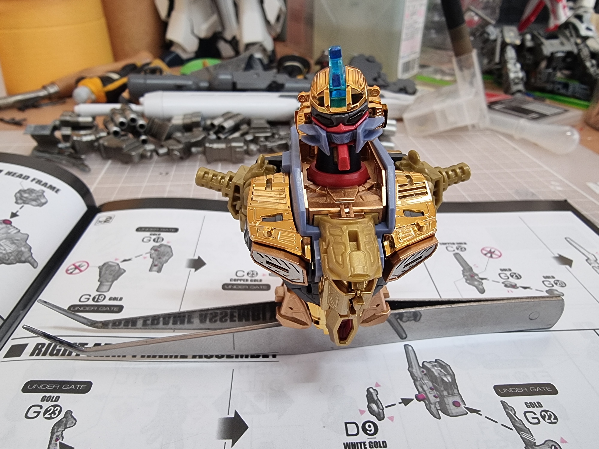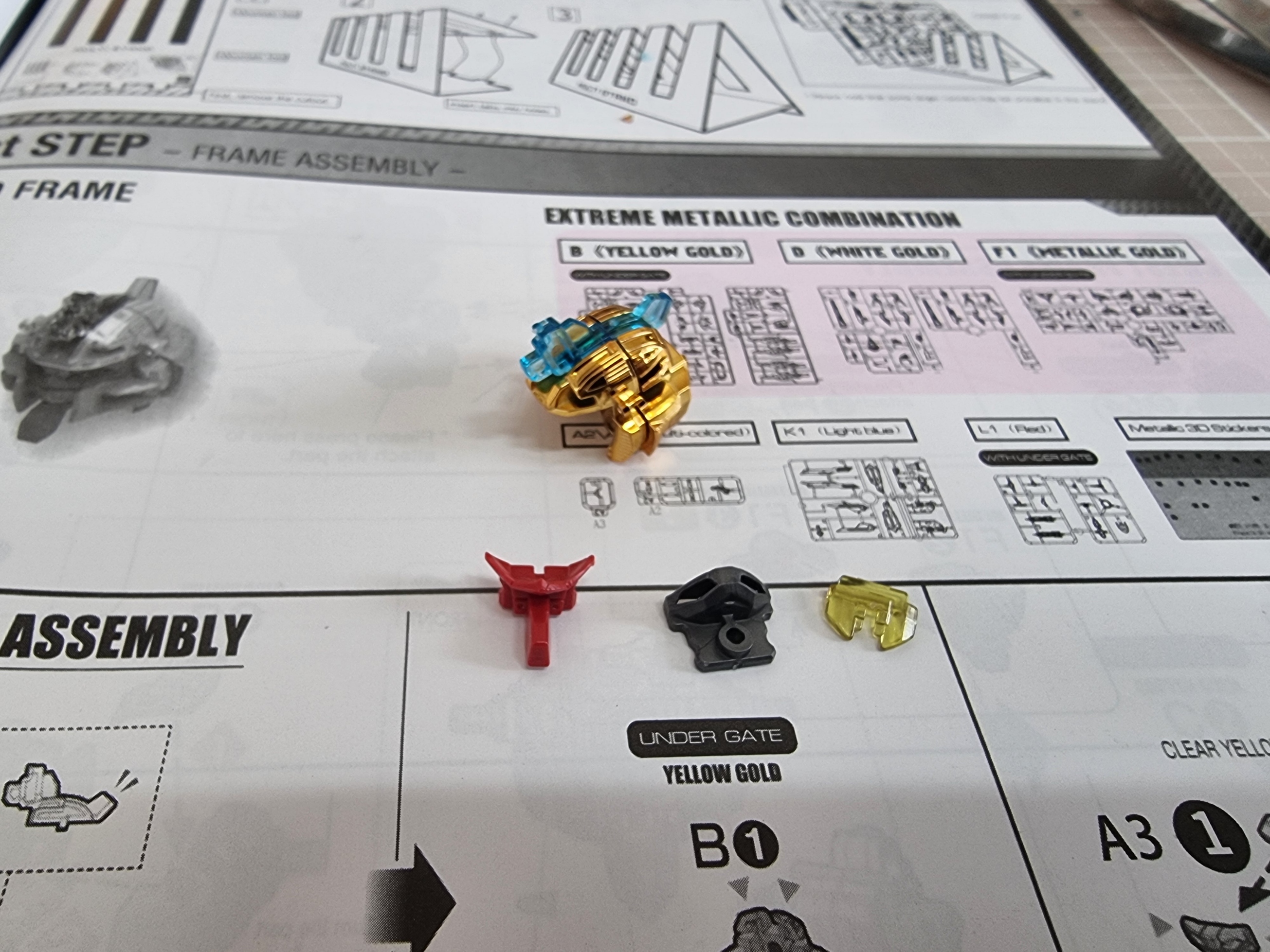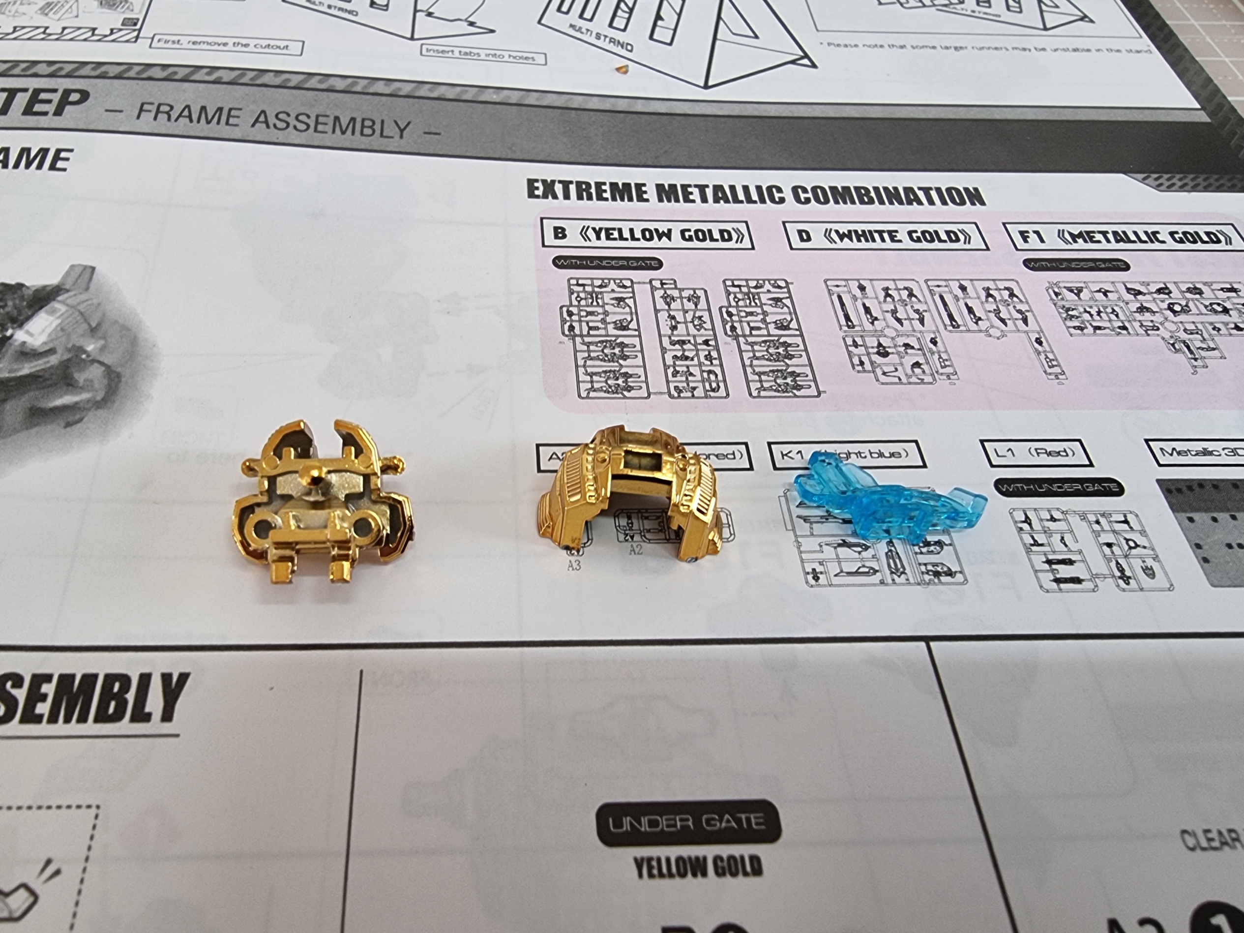 헤드에 이어 바로 바디 프레임 조립을 골드의 색상이 총 4가지로 구성이 되어져 있는데 맥기 코팅과 쿠퍼색 그리고 똥색 또 하나는 무광 골드 느낌의 색이다.
