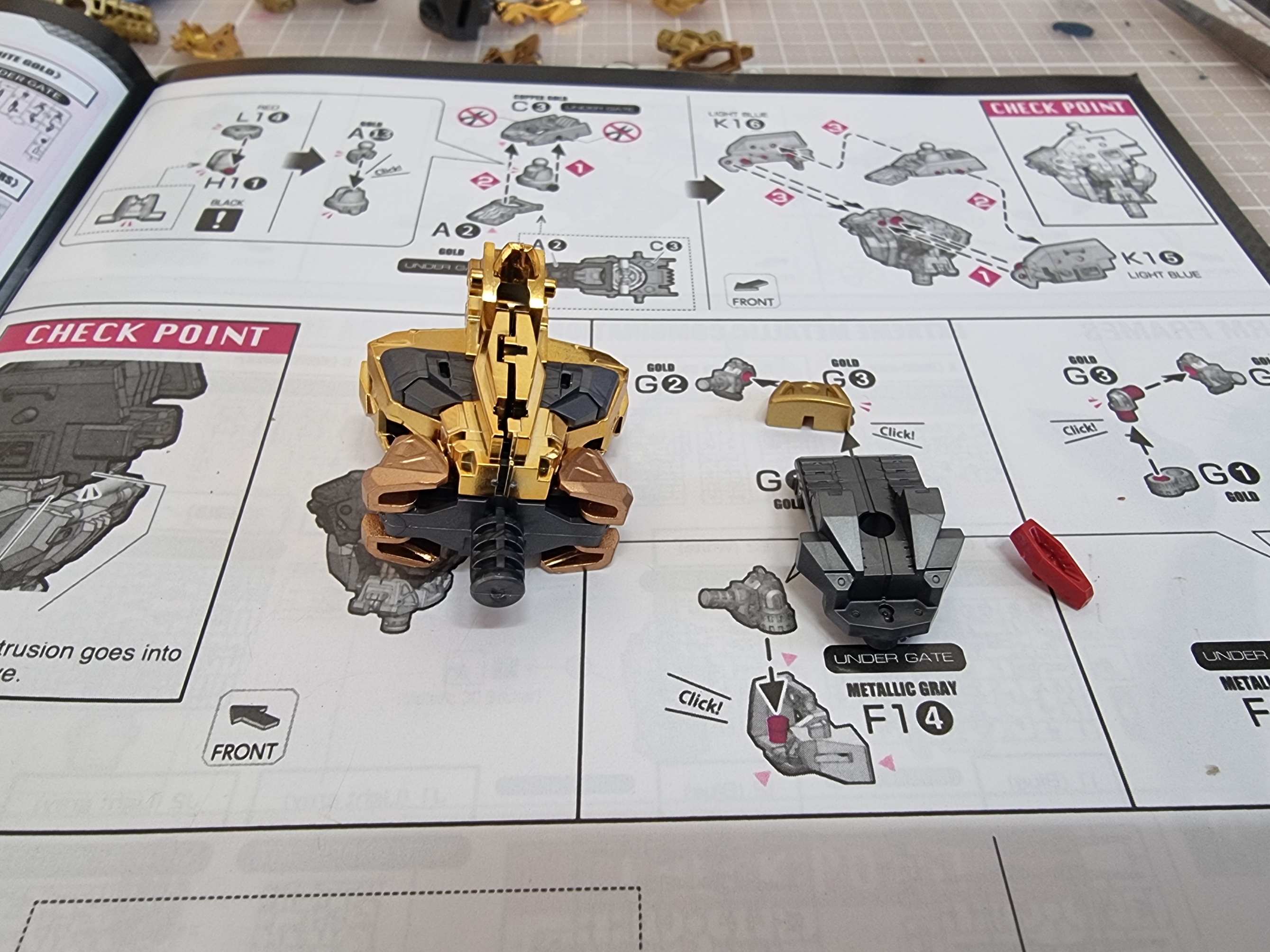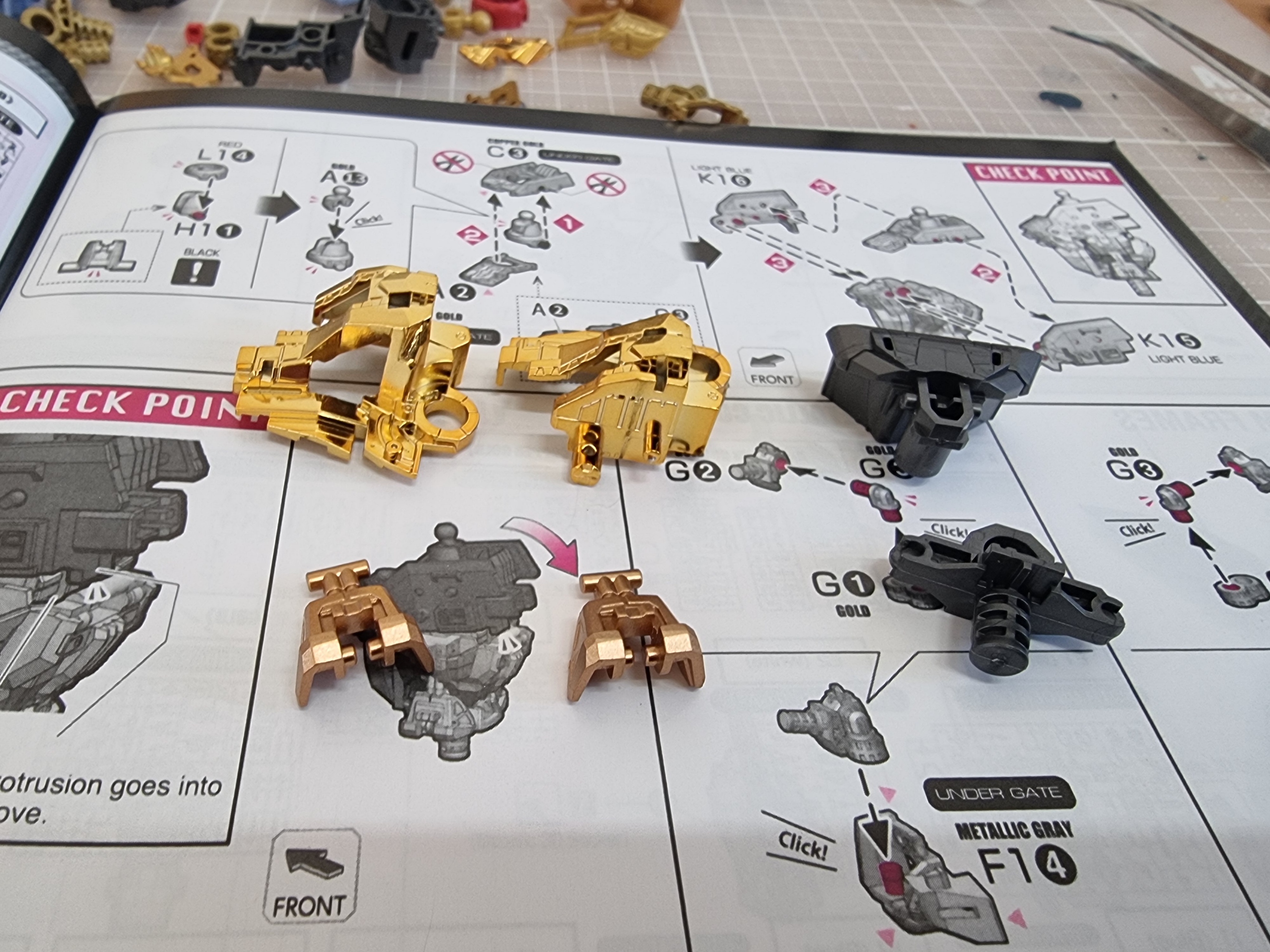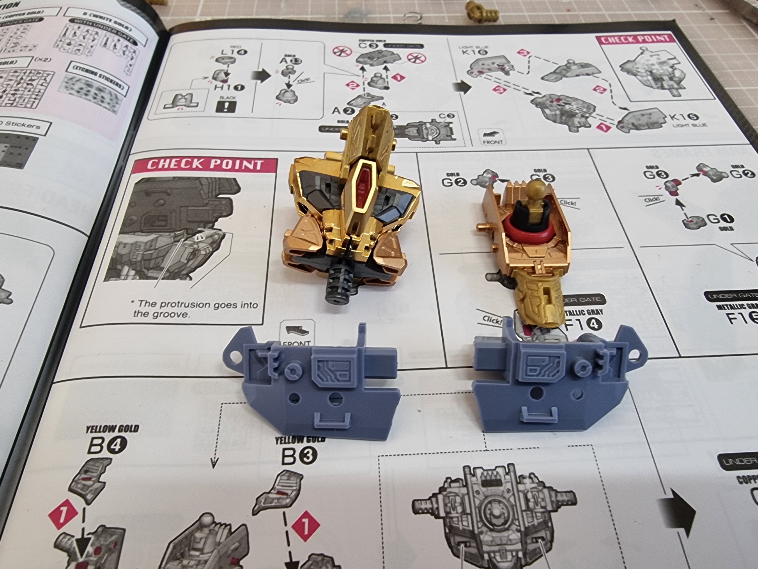 헤드에 이어 바로 바디 프레임 조립을 골드의 색상이 총 4가지로 구성이 되어져 있는데 맥기 코팅과 쿠퍼색 그리고 똥색 또 하나는 무광 골드 느낌의 색이다.