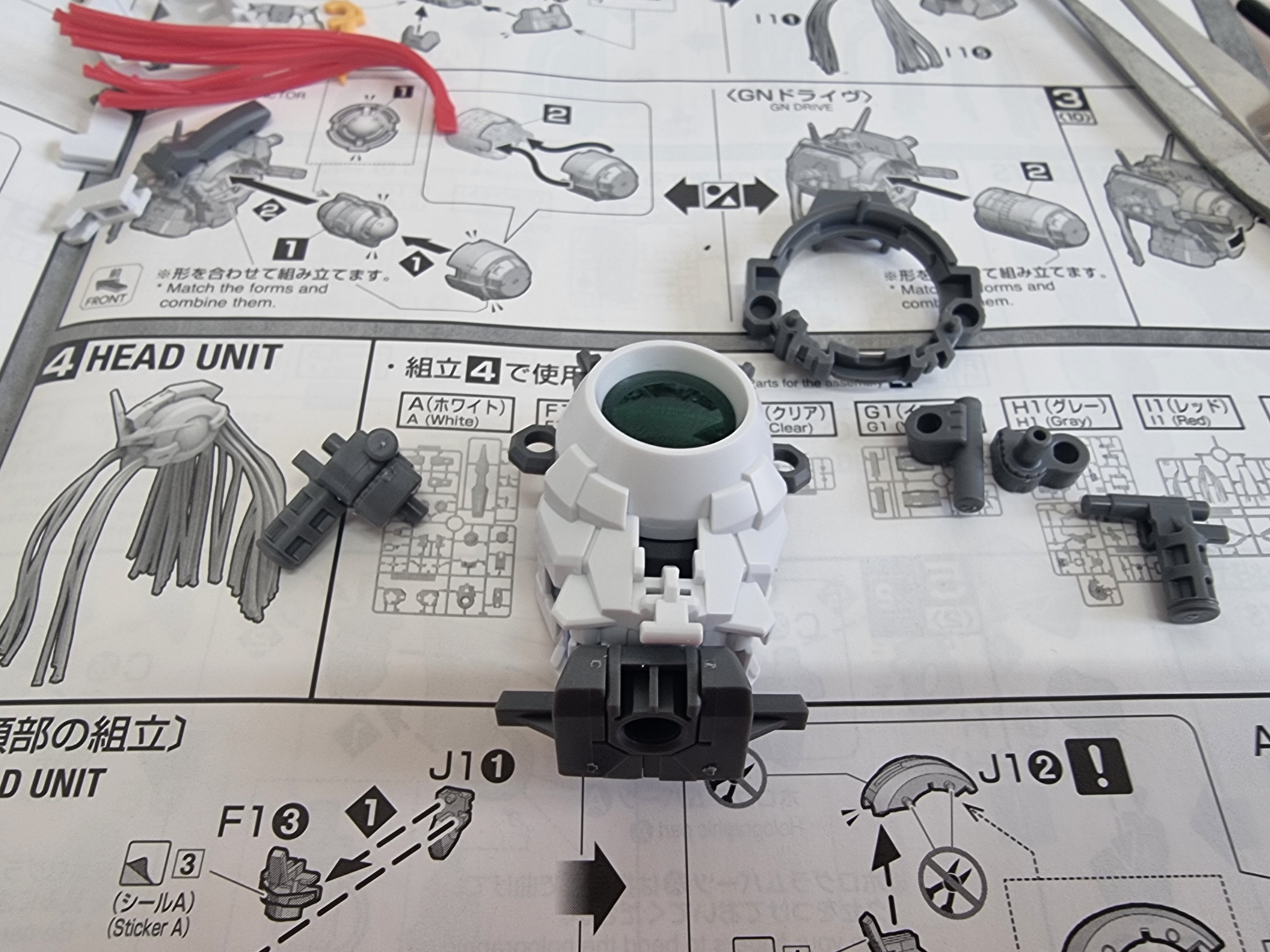 바로 본체 조립 시작 우선은 바디부터... 더블오 시리즈는 스티커를 붙여주면서 시작을 하는 게 좋다. 그리고 선택은 나드레와 버체 둘 중의 하나를 선택해서 붙여 준다. 우선은 나드레를 붙여 본다. 하지만 보이지는 않는다.